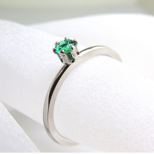 シルバーリング(指輪)合成石エメラルド(AAA)3mm(ラウンド)「SV925」(ロジウム仕上げ)(サイズ目安:7号)(10個)