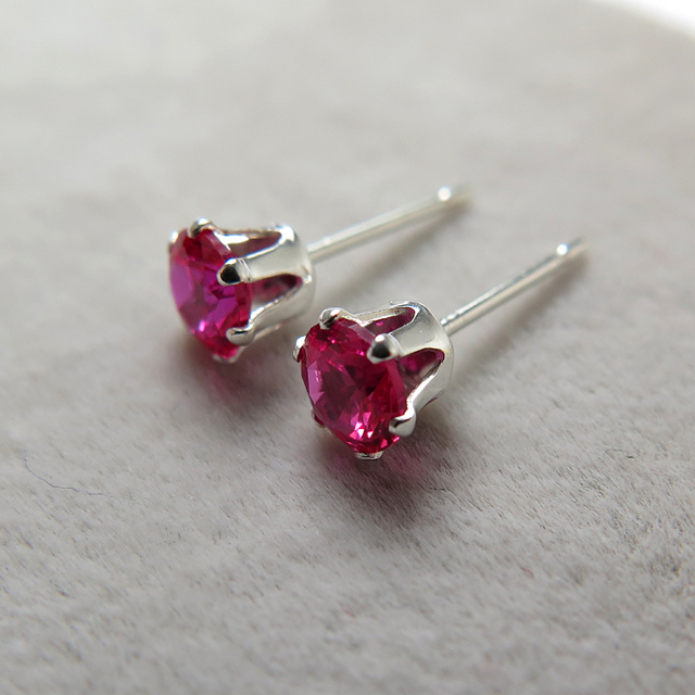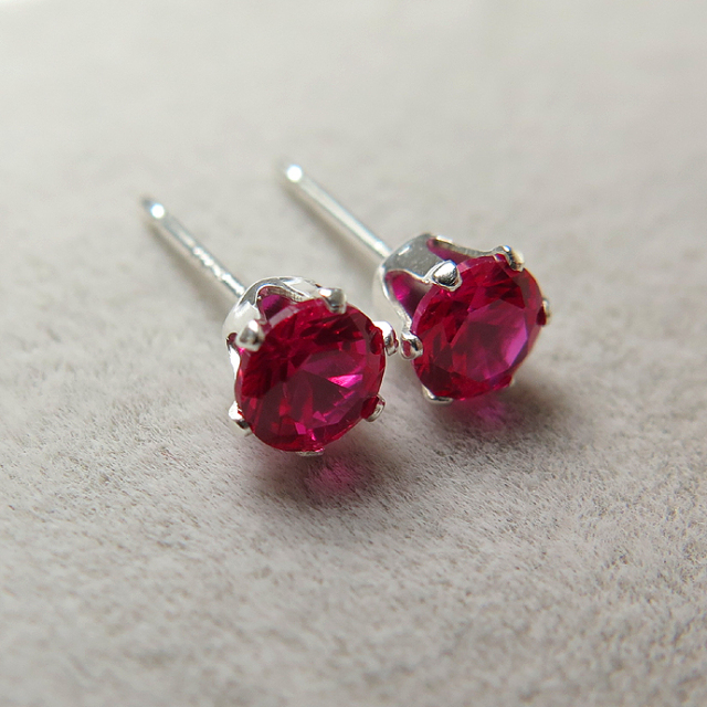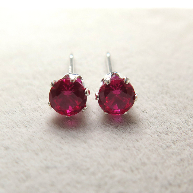 sv925シルバースタッドピアス(4mmラウンド6本爪)合成石ルビー(10ペア)