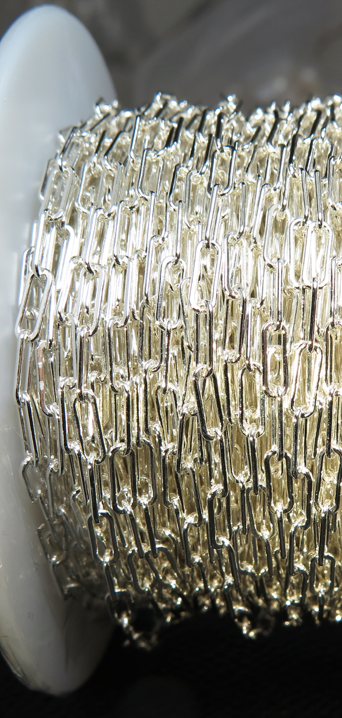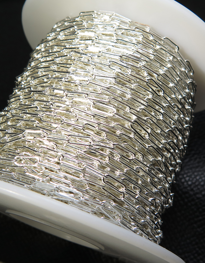 ペーパークリップチェーン シルバー オーバルフラット 平長アズキ 6.5×2.5mm(10センチ)SV925(1本)