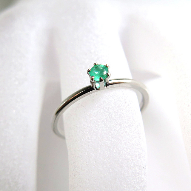 シルバーリング(指輪)天然石エメラルド(ザンビア産・無処理)3mm(ラウンド)「SV925」(ロジウム)(サイズ目安:10号)(5個)