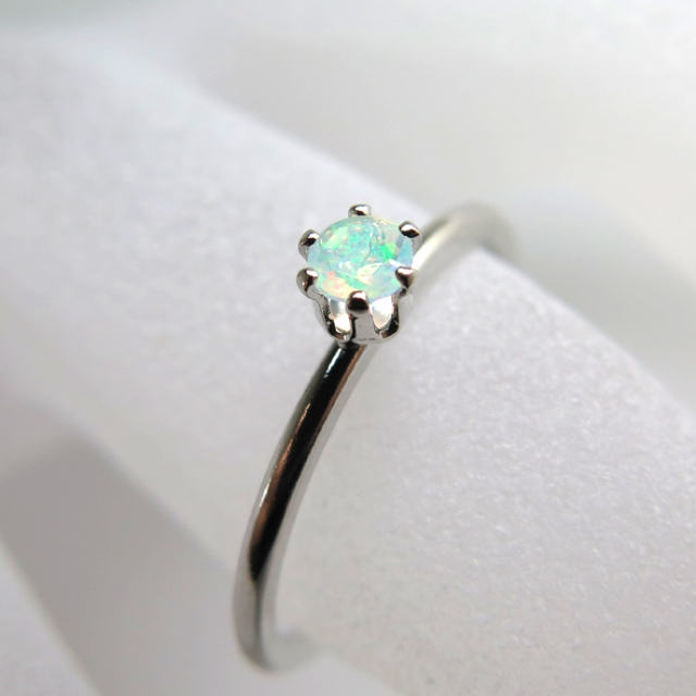 シルバーリング(指輪)天然石エチオピアンオパール3mm(ラウンド)「SV925」(ロジウム)(サイズ目安:10号)(10個)