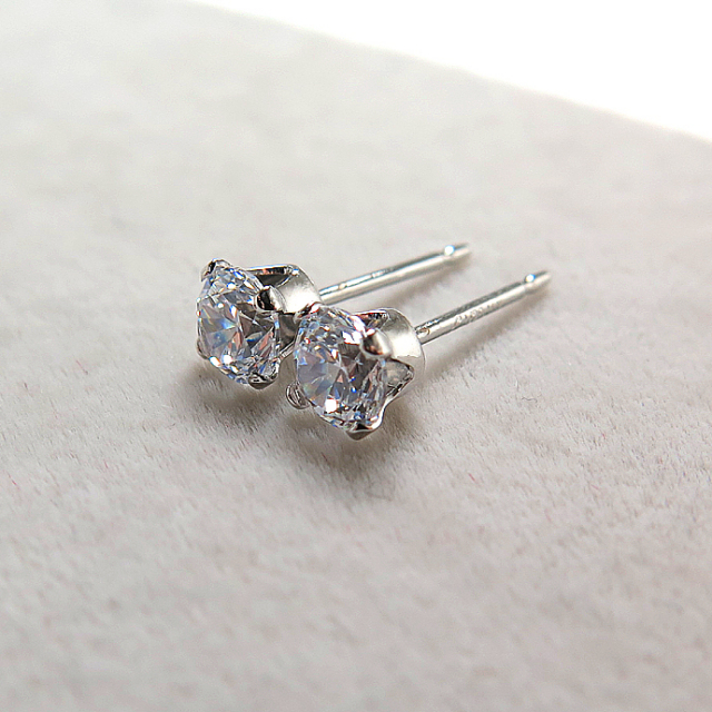 4mm4本爪ポストピアス(CZキュービックジルコニア・4mm)「14kgf(ホワイトゴールドフィルド)」(10ペア/20個)