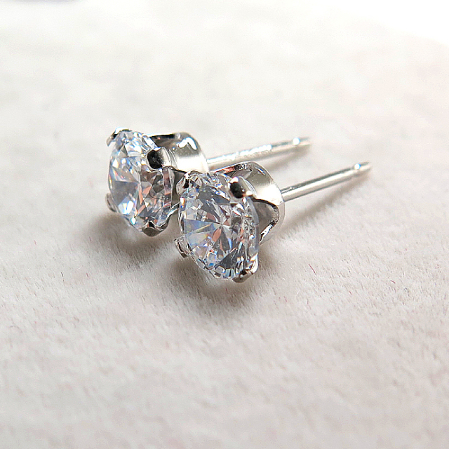 5mm4本爪ポストピアス(CZキュービックジルコニア・5mm)「14kgf(ホワイトゴールドフィルド)」(25ペア/50個)