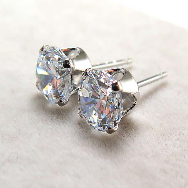 6mm4本爪ポストピアス(CZキュービックジルコニア・6mm)「14kgf(ホワイトゴールドフィルド)」(25ペア/50個)