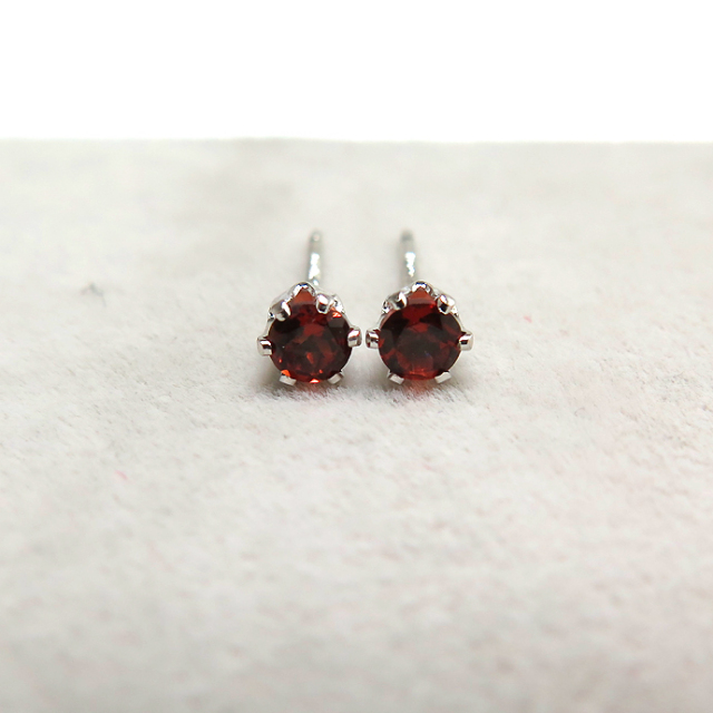 天然石ガーネット・6本爪ポストピアス(ラウンド3mm)「14kgf(ホワイトゴールドフィルド)(ロジウム)」(1ペア)